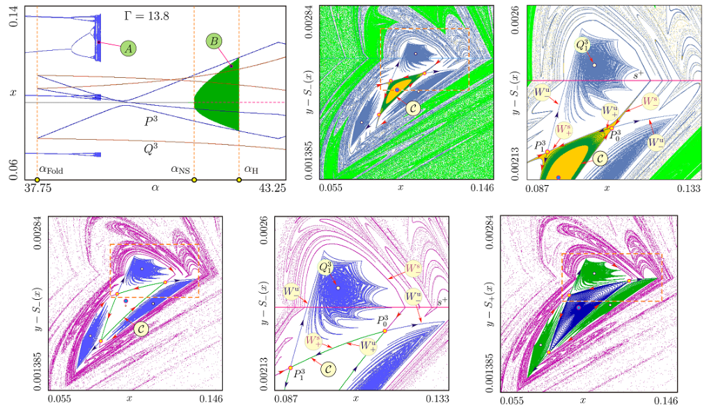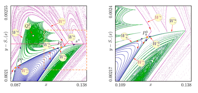 Механизмы внезапного изменения размера хаотического аттрактора через гомоклиническую бифуркацию (expansion bifurcation, interior crisis) [11]