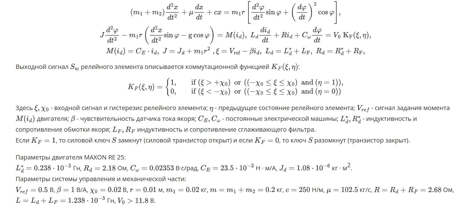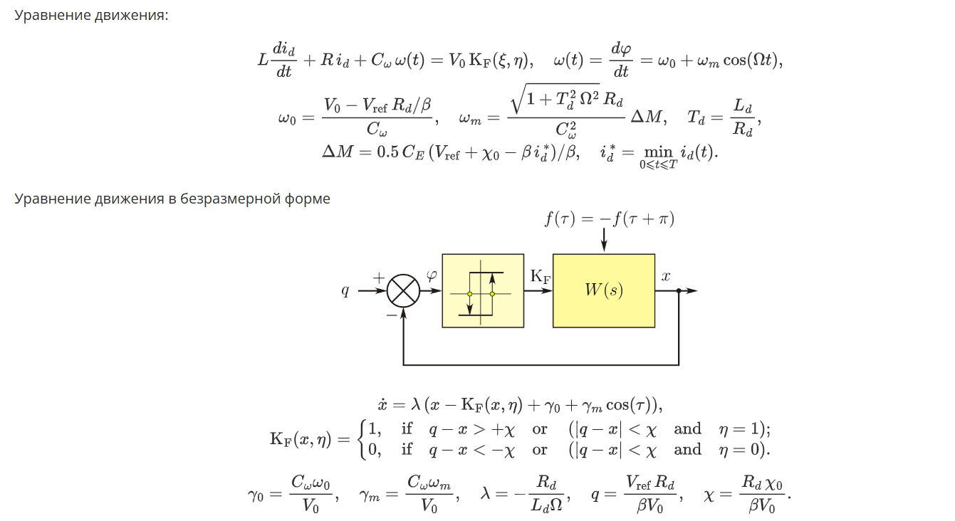 Математическая модель вибрационной машины с релейным автоматическим управлением